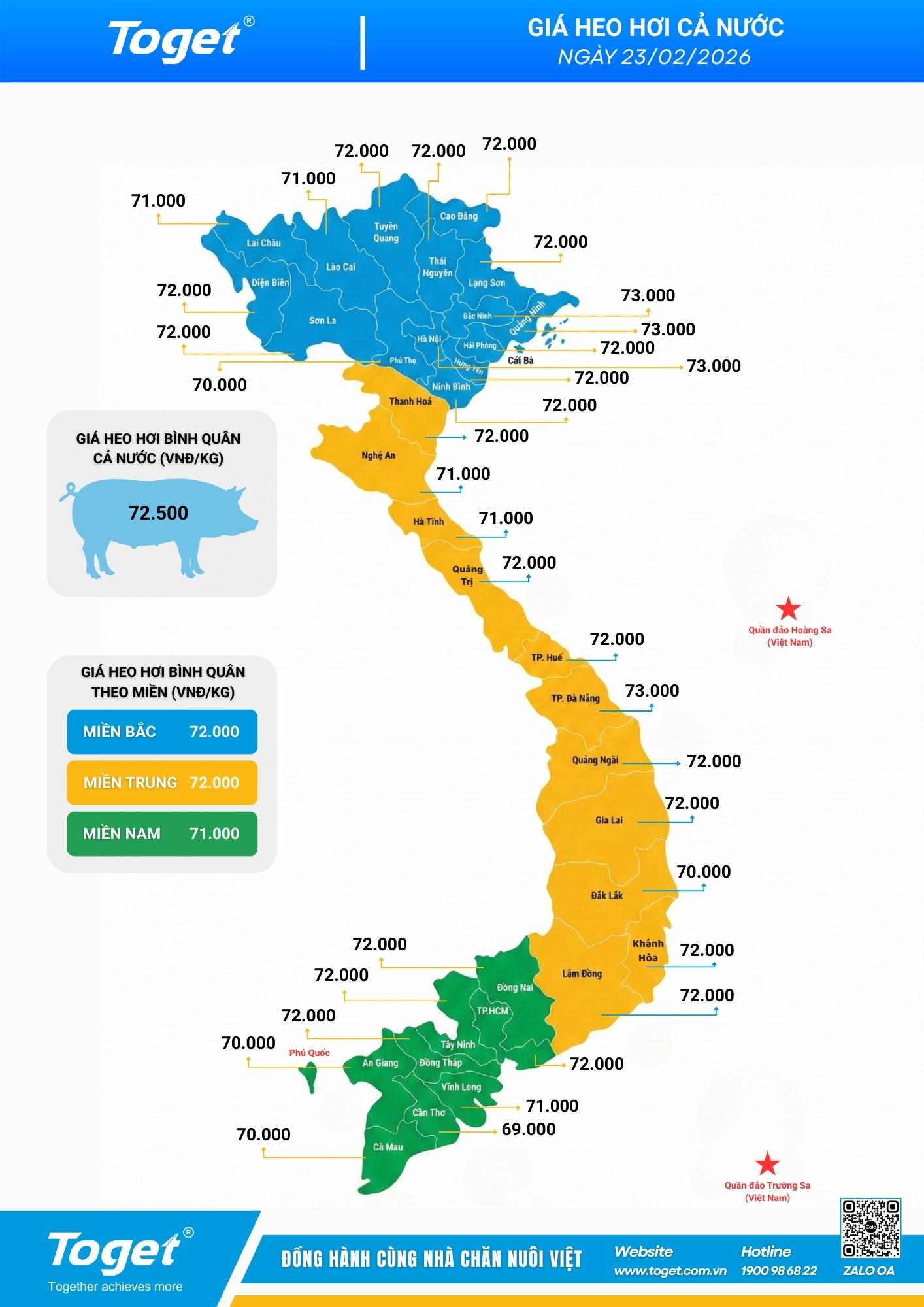 • Mức giá cao nhất (73.000 đồng/kg): Vẫn được duy trì tại Quảng Ninh, Bắc Ninh và Hà Nội.