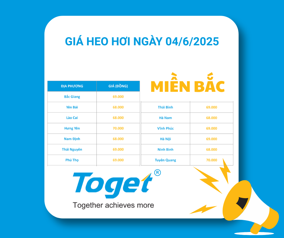 Khảo sát tại thị trường miền Bắc trong sáng ngày 4/6 cho thấy giá heo hơi tiếp tục có xu hướng tăng nhẹ ở một số địa phương. Cụ thể, Hưng Yên và Tuyên Quang cùng tăng 1.000 đồng/kg, lên mức 70.000 đồng/kg. Cùng ghi nhận tăng một giá, heo hơi tại Vĩnh Phúc đạt 69.000 đồng/kg.